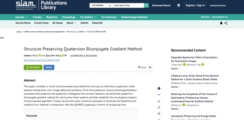 近日,bevitor伟德李涛博士以第一作者署名的文章“Structure Preserving Biconjugate Gradient Method”在国际数值代数领域权威期刊《SIAM Journal on Matrix Analysis and Applications》正式发表,文章链接https://doi.org/10.1137/23M1547299。